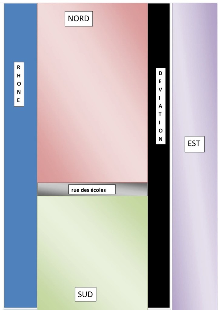 - Du Sud de la rue des Écoles (non incluse) jusqu’aux Champagnières