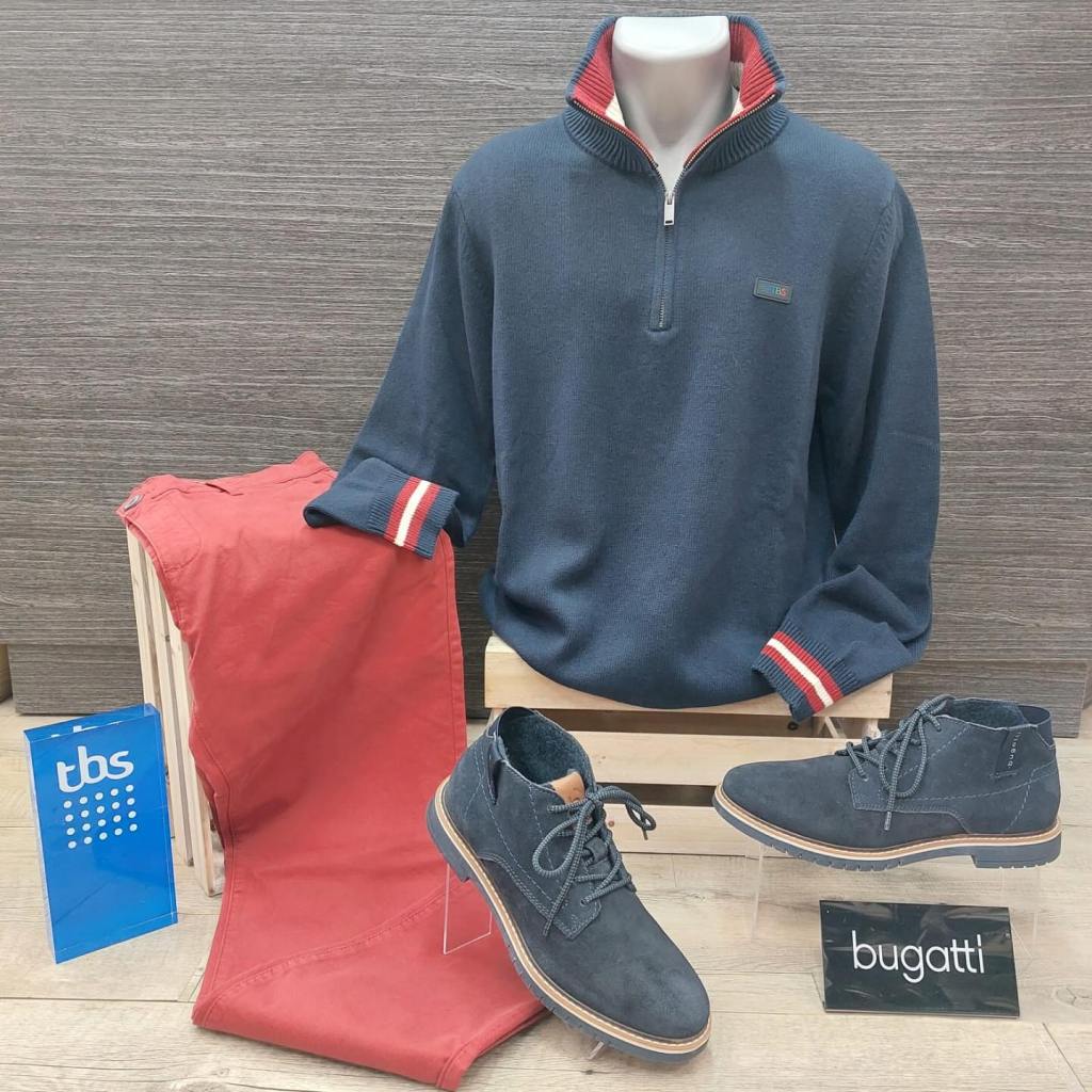 Q : Comment associer ces looks ? → Pull TBS + bottines Bugatti pour un style casual chic, ou baskets Rieker + chemise à carreaux pour un week-end décontracté.
