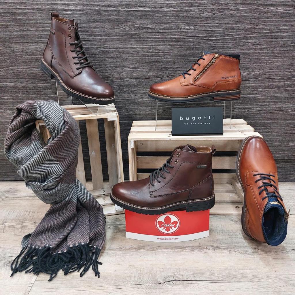 Q : Quelles tailles sont disponibles chez Rieker et Bugatti ? → Du 39 au 48 pour hommes, avec des largeurs adaptées. Essayage en boutique recommandé.