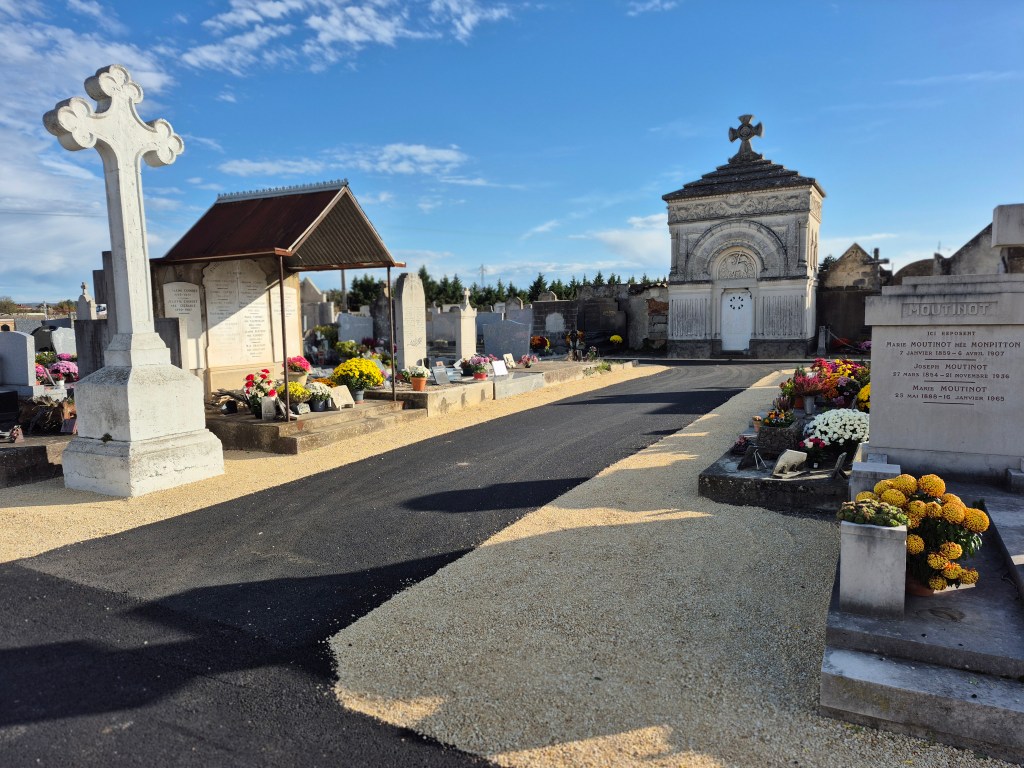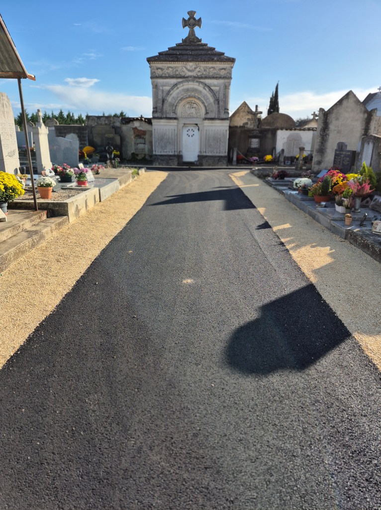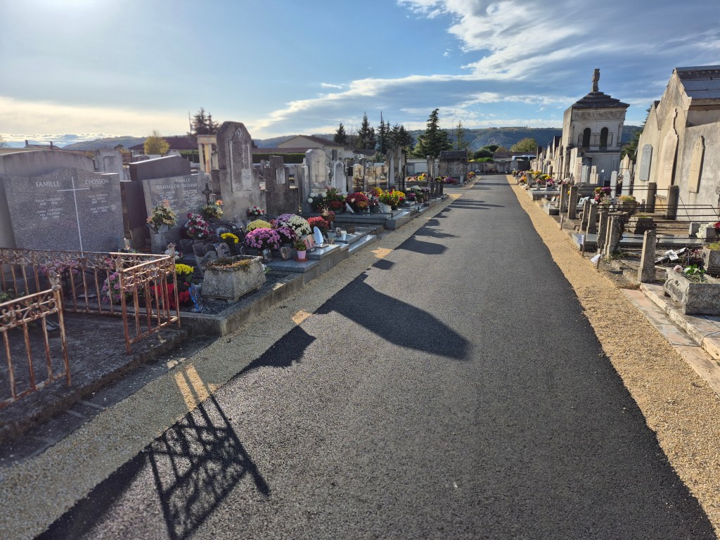 La transformation la plus visible concerne le revĂȘtement des allĂ©es principales du cimetiĂšre. Les anciens chemins de terre et de gravillons, source de difficultĂ©s pour de nombreux visiteurs, ont Ă©tĂ© remplacĂ©s par un enrobĂ© noir lisse et stable.
