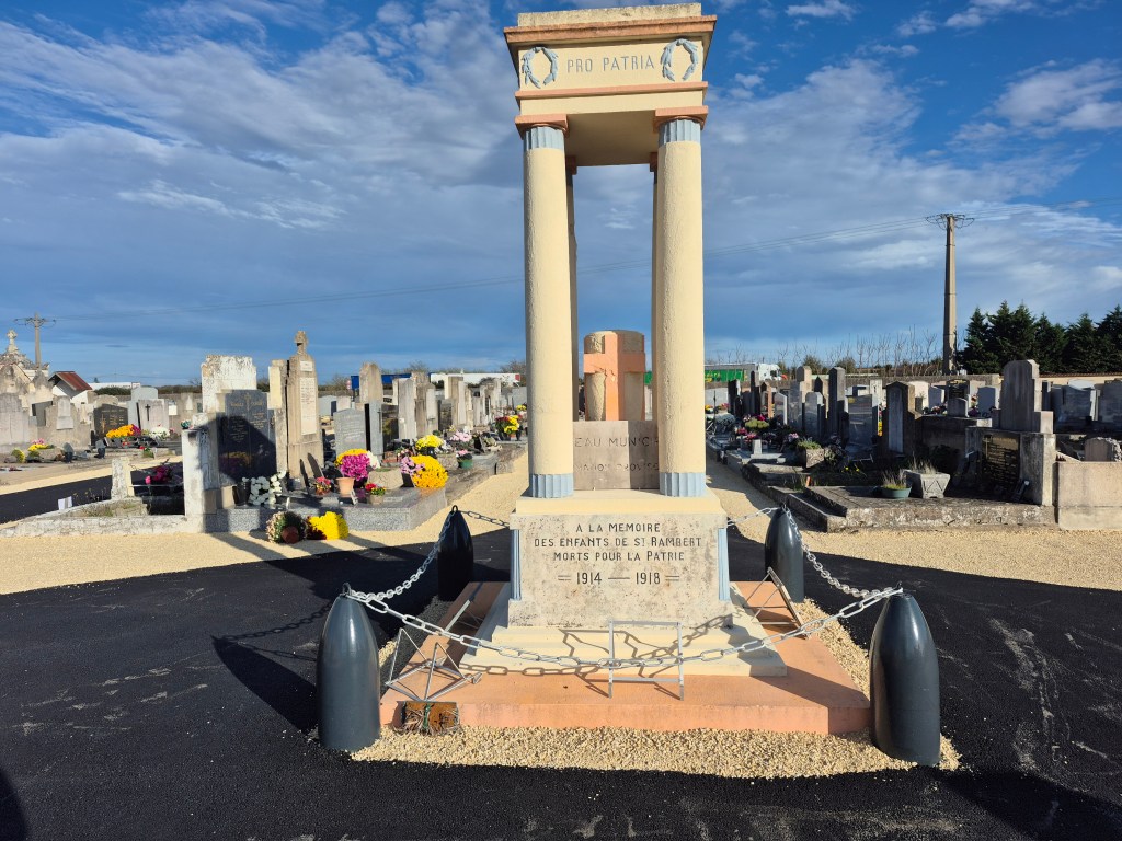Au cĆur du cimetiĂšre se dresse le Monument aux Morts de Saint-Rambert-d’Albon, Ă©difice emblĂ©matique qui honore les enfants de la commune tombĂ©s pour la France. L’inscription « PRO PATRIA » rappelle le sacrifice consenti lors des conflits, notamment pendant la PremiĂšre Guerre mondiale qui marqua profondĂ©ment la communautĂ© locale.